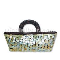Evening clutch bag in rectangle shape design w/ sides 21cm x 9.5cm made of kabebe shell & black tab shell square inlaid. |