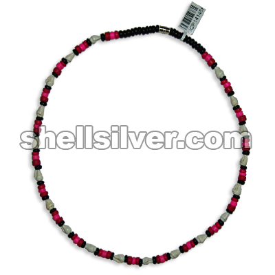 Necklace weaving 9 rows 24 inches in 10 mm silver balls, 10 mm and 12 mm wood beads super bleach, robles wood triangle 3 sides 23x50 mm, nasa shell tiger, 3 mm silver balls and bamboo tube 4x8 mm. |