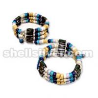 Necklace 18 inches in 4-5 mm coco pukalet black, blue, light blue and turquoise blue with nasa shell white. |